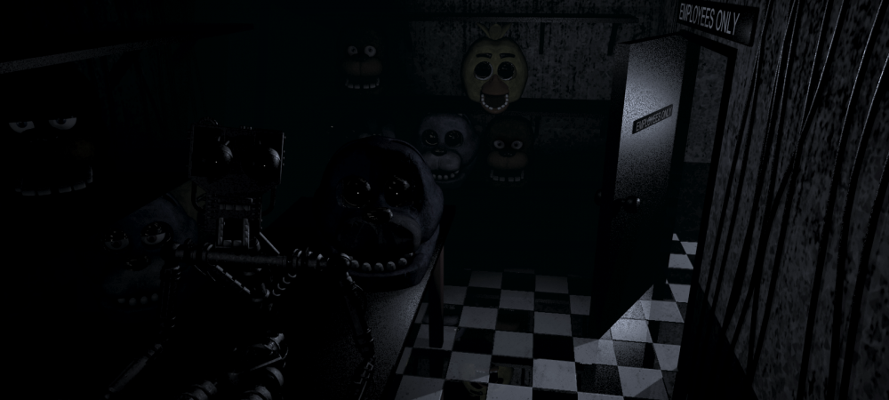 Ezen a képen "Shadow Bonnie" látható.Ő csak a 3. night-tól jelenik meg. Ha nem akkor , akkor szerencsés vagy !